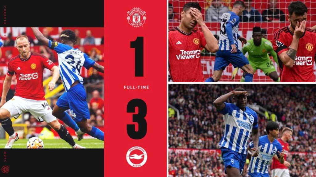 အသင်းတွင်း ပြဿနာတွေ အများကြီး ရင်ဆိုင်နေရတဲ့ မန်ချက်စတာ ယူနိုက်တက်ဟာ ဒီနေ့ည အိုးထရက်ဖို့ဒ်မှာ ကစားခဲ့တဲ့ ပွဲမှာ ဘရိုက်တန်ကို ၁-၃ ဖြင့် ဂိုးပြတ် ရှုံးနိမ့်ခဲ့ကာ ပရိသတ်တွေအား စကားလုံးတွေ ပျောက်ဆုံးစေခဲ့ပါတယ်။