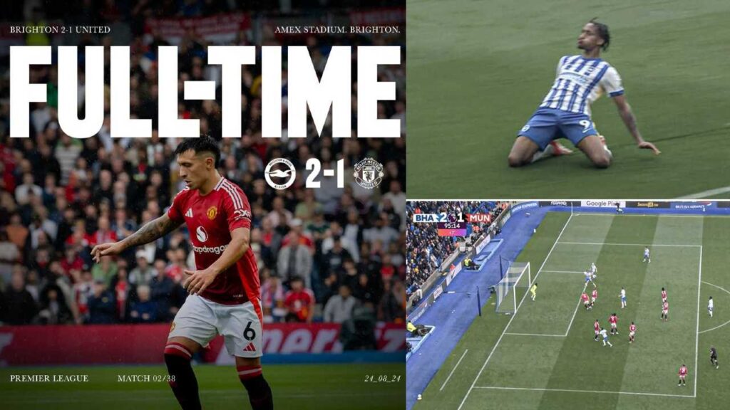 မနေ့ညက ကစားခဲ့တ့ ပရီးမီးယားလိဂ်ပွဲစဉ် ၂ မှာ မန်ချက်စတာယူနိုက်တက်အသင်းဟာ ဘရိုက်တန်ကို အဝေးကွင်းမှာ ၂-၁ ဂိုးနဲ့ရှုံးနိမ့်ခဲ့ပြီး စောစောစီးစီး ရှုံးပွဲစတင်ကြုံတွေ့ခဲ့ပြီဖြစ်ပါတယ်။