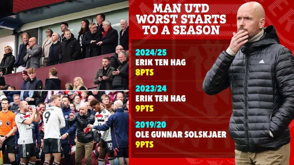 အဲရစ်တန်ဟက် ဦးဆောင်နေတဲ့ ယူနိုက်တက်ဟာ ပရီးမီးယားလိဂ်အဖွင့်ပွဲ ၇ ပွဲတွင် ၈ မှတ်တည်းသာ ရရှိထားပြီး အဆင့် ၁၄ နေရာမှာ ရပ်တည်နေကာ သမိုင်းတွင် အဆိုးရွားဆုံး ပရီးမီးယားလိဂ် တာထွက်နှင့် ရင်ဆိုင်နေရပါတယ်။